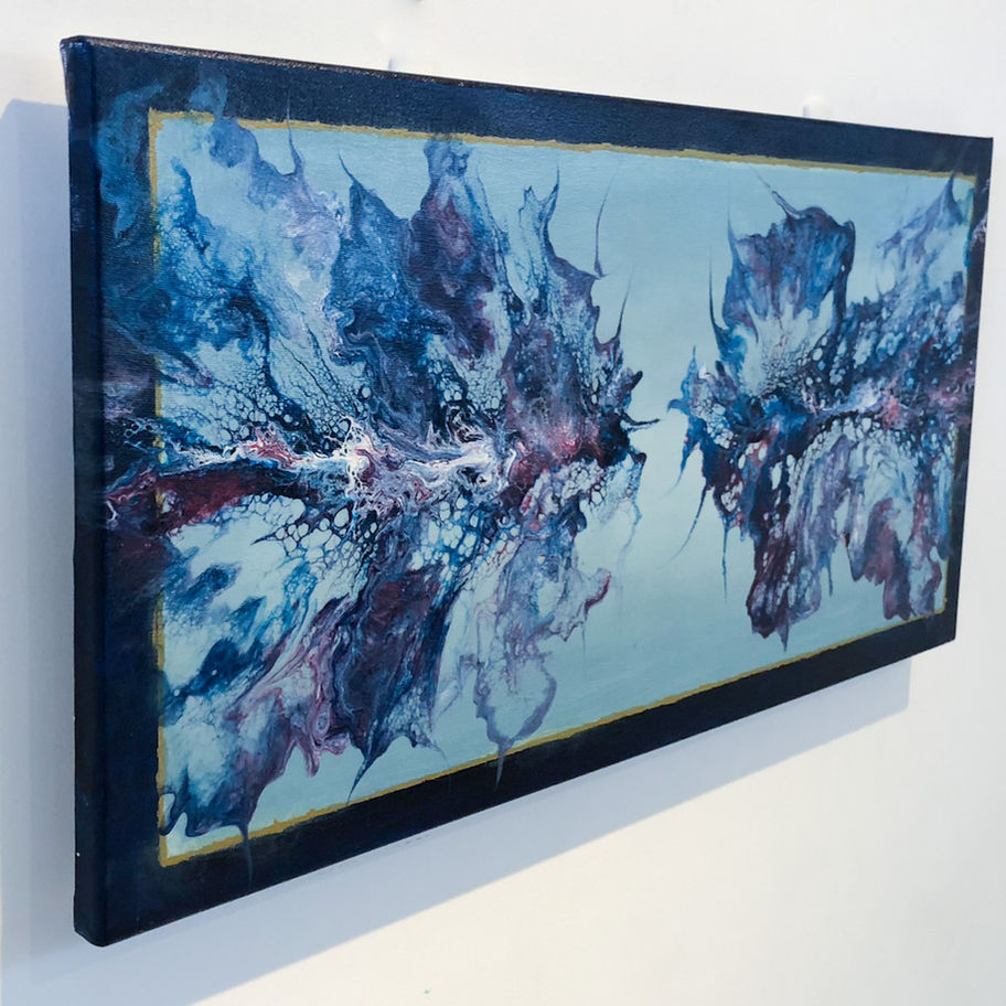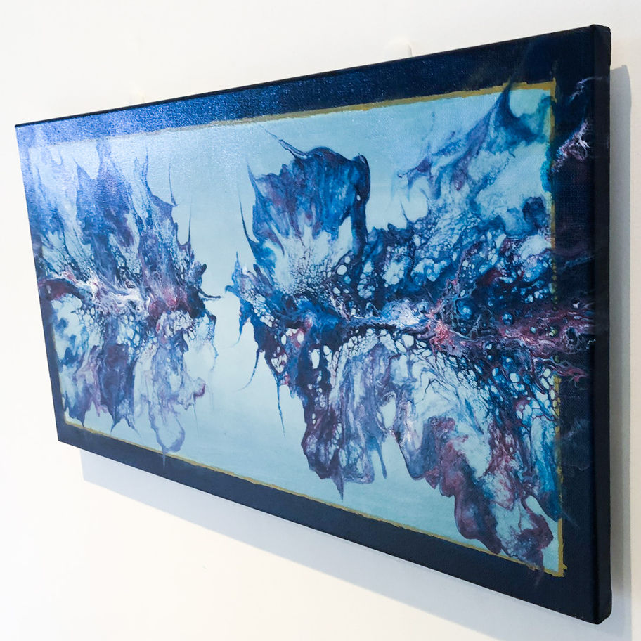 Blue and Pink - Acrylic Pour on Canvas. 40cm x 51cm. Gloss Varnish Finish.