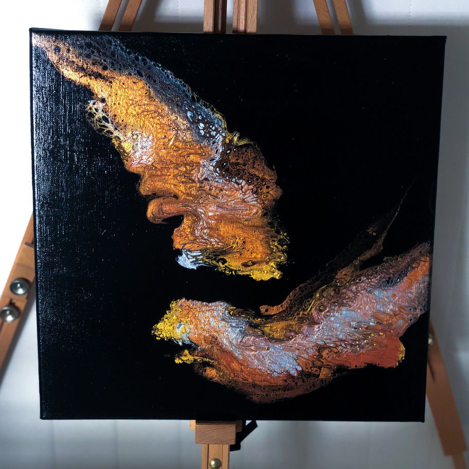 Golden Koi - Acrylic Pour on Canvas. 36cm x 36cm. Gloss Varnish Finish.